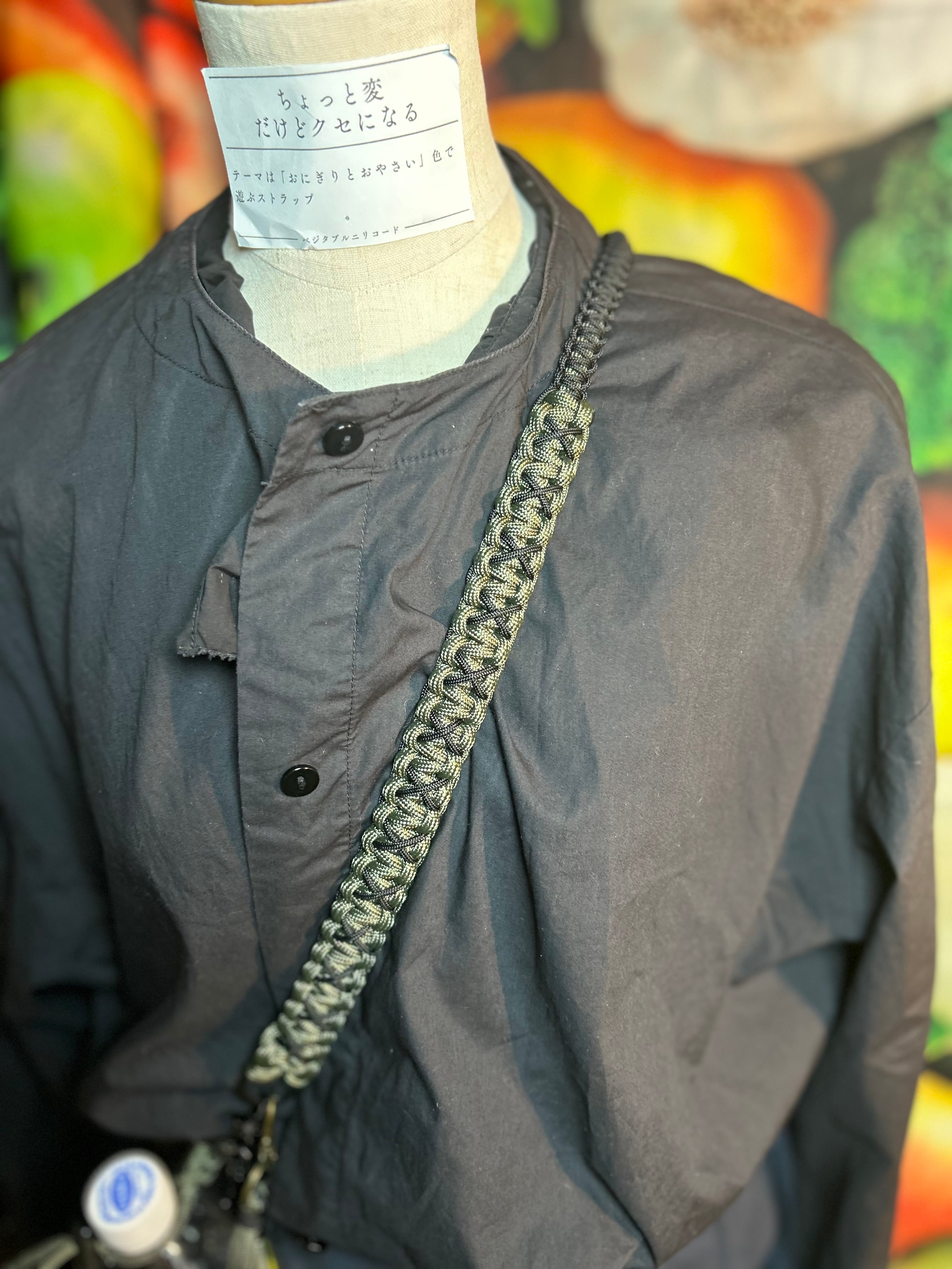 深いグリーンが印象的な「男前ピーマン」カラーのパラコードストラップ。