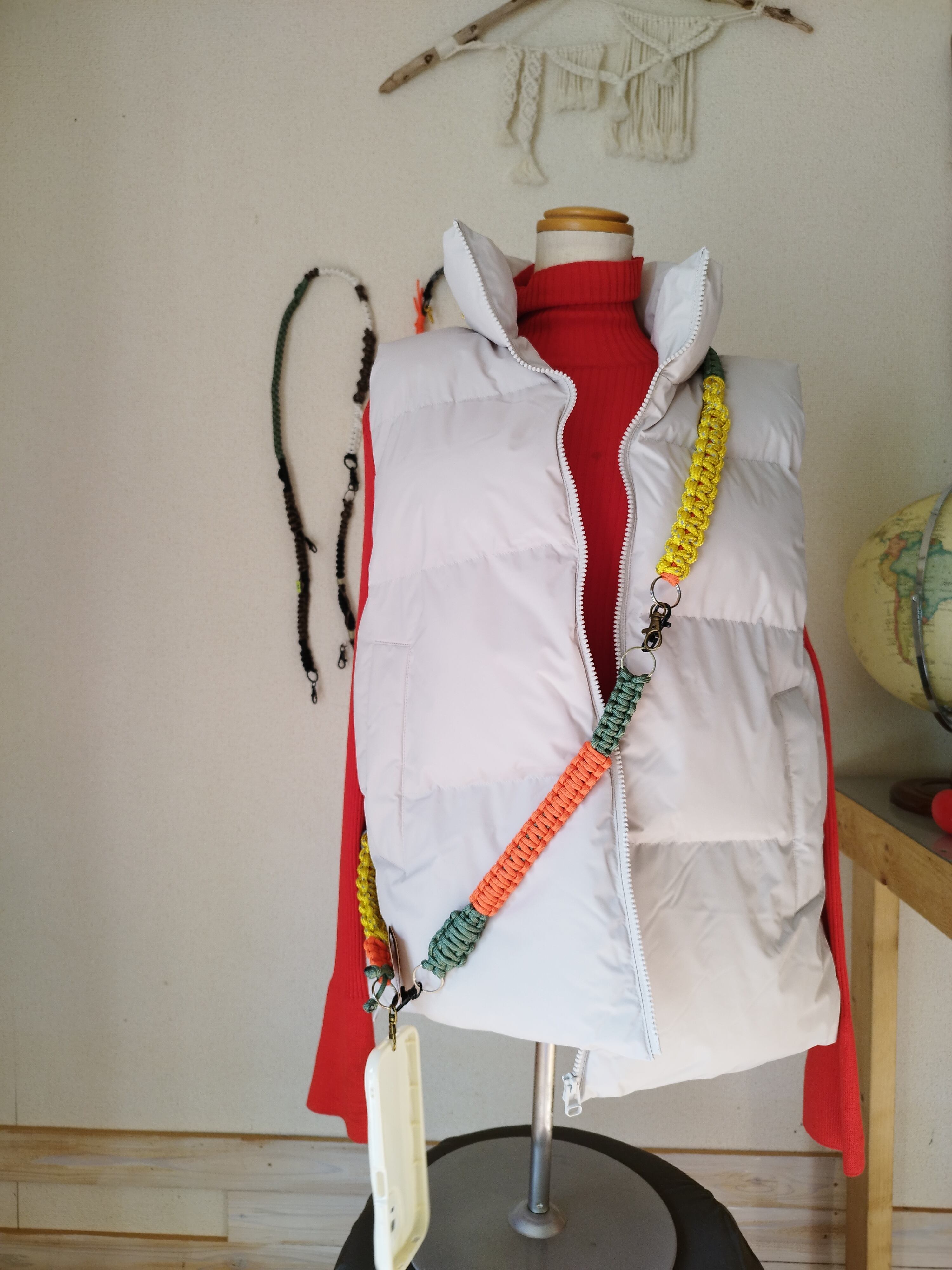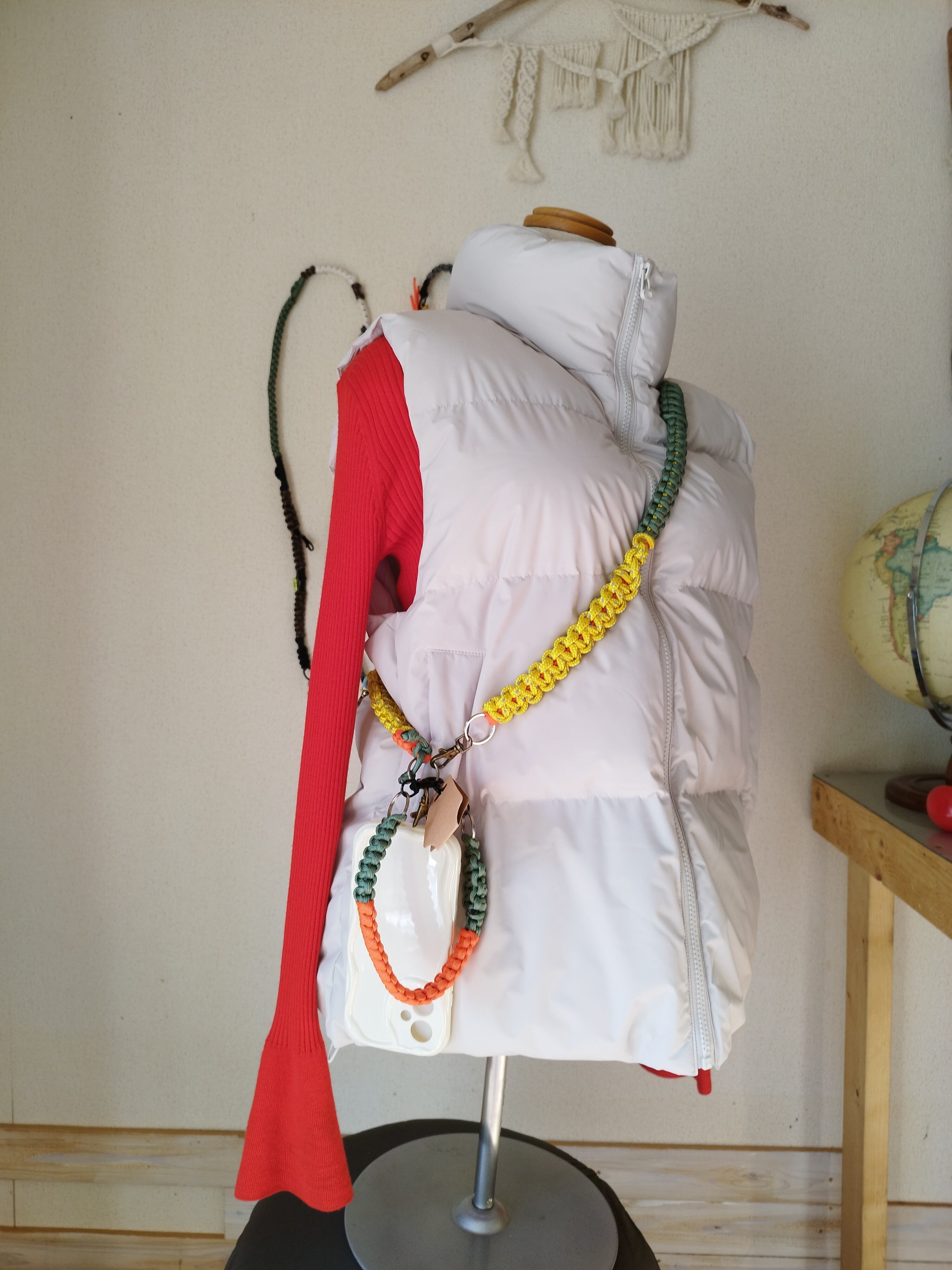 このストラップは、長さの調整が可能で、使いたい長さで便利にお使いいただけます。独自のデザインはシンプルながらも、色彩の遊び心が引き立ち、日常のコーディネートに楽しさをプラスします。